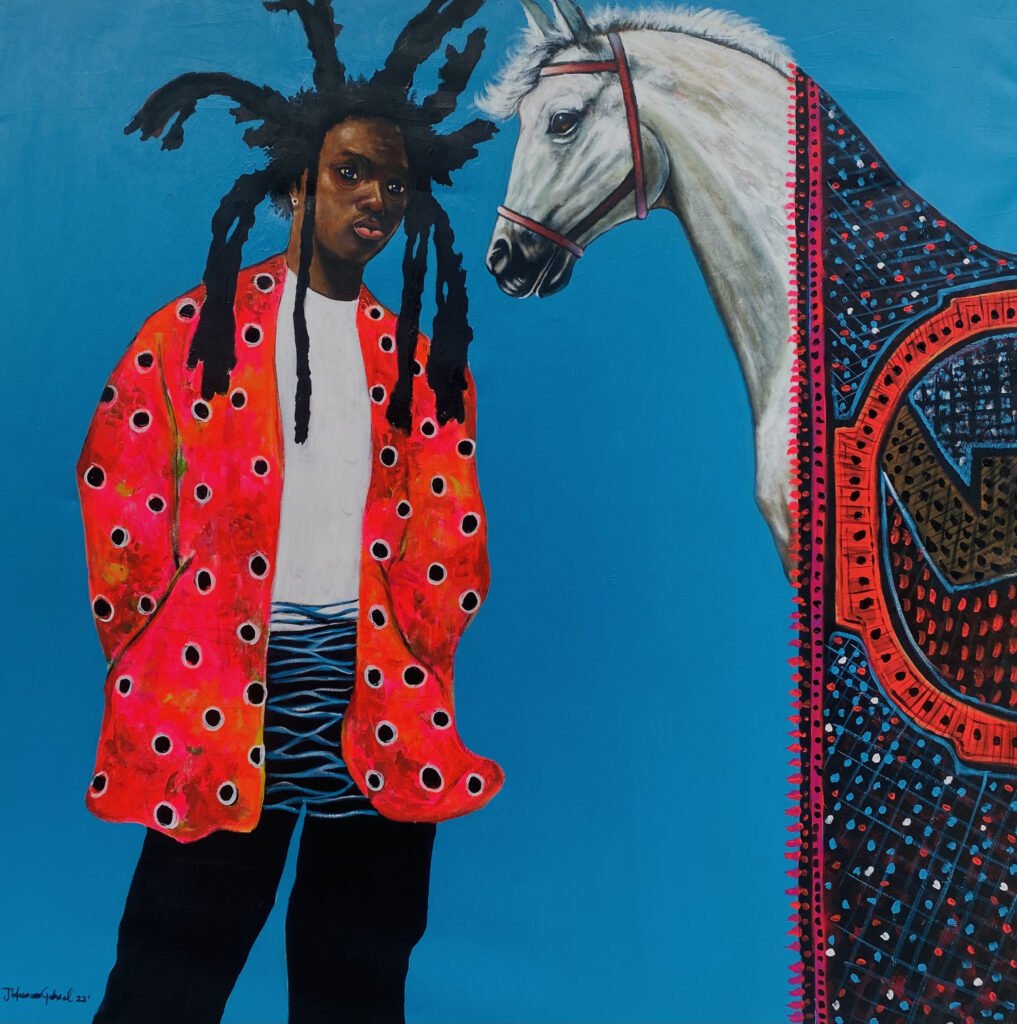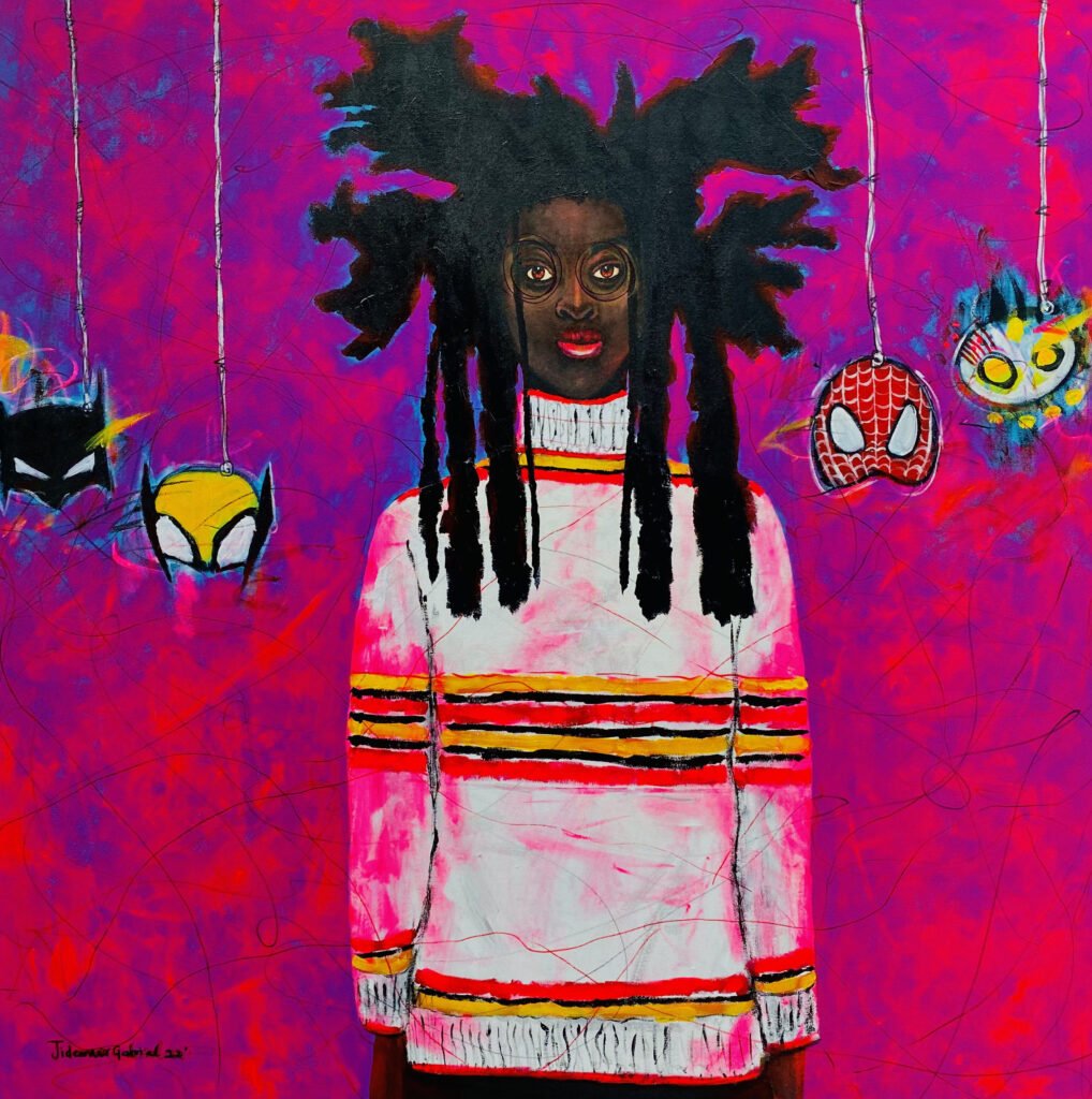 Gabriel Jideonwor Udoka (1991), Is an artist and also a gallerist, owner of (Vivid Exclusive Art Gallery), lives in Lagos city, Nigeria. He was educated at Lagos State Polytechnic where he graduated in Art and Industrial Design in 2015. From a very tender age, Gabriel wanted to tell stories and showcase the beauty, perfection of God’s creation through pictures. But growing up was hard because of the harsh realities of life. He faced the challenges of peer pressure and family and the inability of others’ thoughts to understand his wild and imaginative mind. Art was his escape from life. Art offered him hope and a promise of a future filled with beautiful colors.His styles are neo-expressionism and realism. Artists whose styles have influenced his work are Jean Michel Basquiat, Voka.