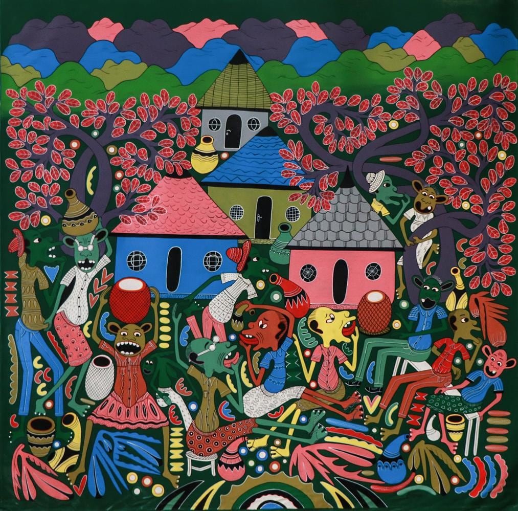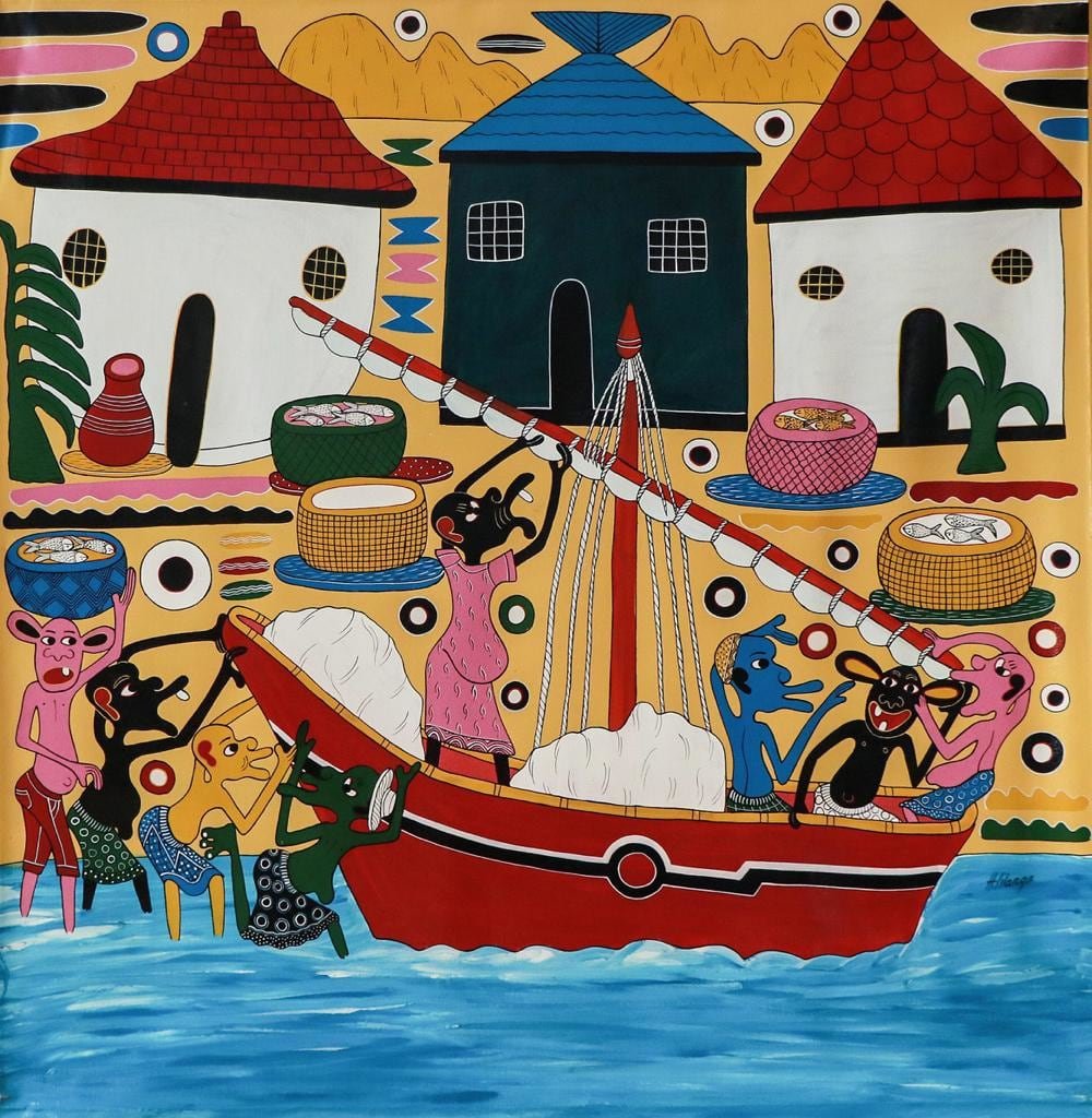 The only artist in Tanzania who has succeeded in developing the Lilanga art further is Hendrick Lilanga, born on 20th October 1974 in Dar es Salaam, the grandson of George Lilanga. Henrick joined his grandfather in 1993. At that time it was only Noel Kapanda, a Tinga Tinga painter who worked together with George Lilanga. George Lilanga draw sketches and Noel Kapanda painted. George Lilanga now got more and more orders and he needed help.