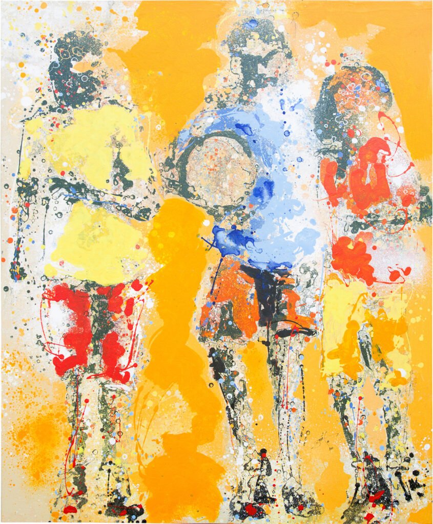 Prince Galla GNOHITE considers Grobli ZIRIGNON his teacher and from him he borrowed the technique of scraping and washing out paint that was projected onto the canvas using a pipette, an instrument familiar to children.