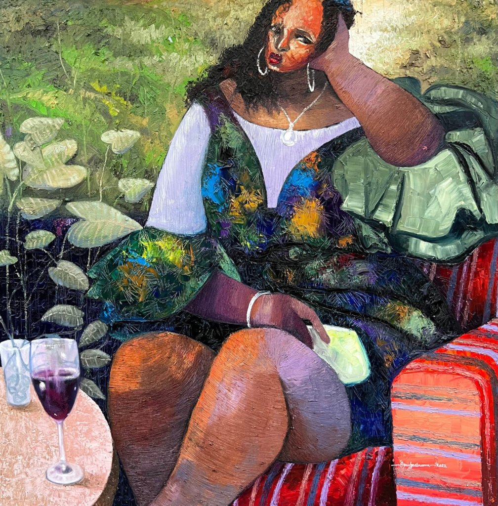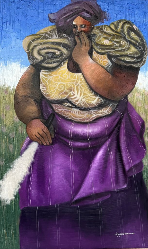 Today, painting fat subjects have become dominant in his works; a source of inspiration to him, and sometimes he uses himself as a reference. “I enjoy those forms in I see when I study the big size men and women.” His composition and use of colours have also evolved. Painting nude figures has become his favourite theme of expression. He is now audacious, expressive and explorative with his work, which are elusive, paradoxical and carefully balanced between representation and abstraction, and thought-provoking titles such as Morden Maidens, Size Matters, the Future Beckons, Lost in Thought, Spare the Rod.
