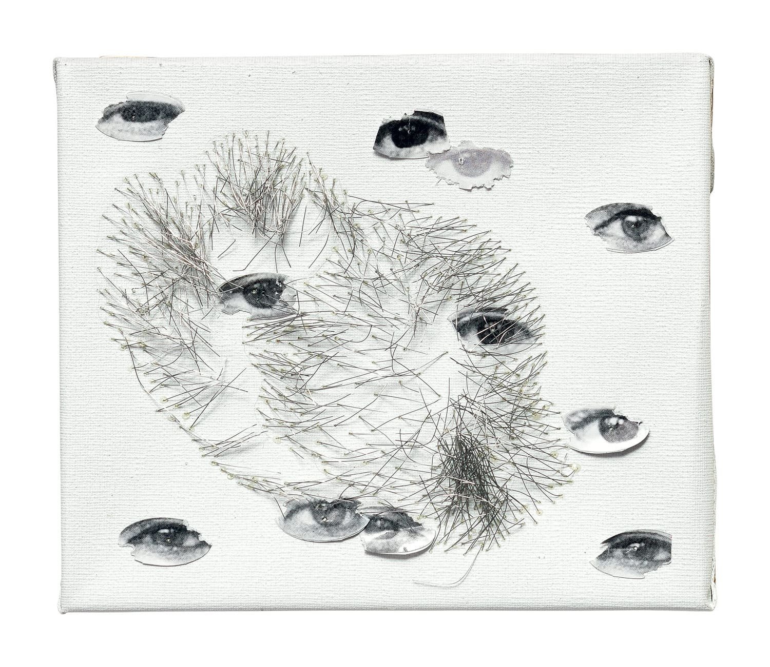 Miradas, 2019, Metallic threads on canvas, 10 x 12cm. Image courtesy of Imago Mundi Collection.