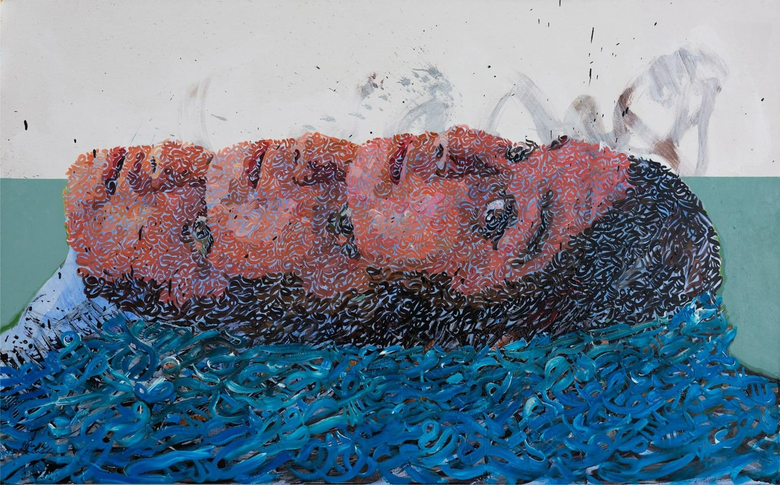 Zakaria Ramhani, who currently lives and works in Montreal, is best known for his large-scale paintings that use Arabic calligraphy as a formal gesture. Raised in an Islamic society, with a landscape painter for a father, aniconism informs the paradox in the artist’s works. His fascination with portraiture is at odds with the practice of Islamic calligraphy, which has long been a revered art form for representing the divine. In his large-scale pieces, the calligraphy and text are as much formal gestures as linguistic content that alludes to political and art history. The nature of his work has landed him in controversy — his 2012 painting You Were My Only Love was censored by authorities at Art Dubai who did not approve of his depiction of police brutality in Cairo’s Tahrir Square.