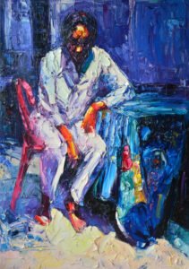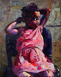 There is a certain luminosity that emanates from Bolaji Ogunwo’s works as they reveal a delicately rich application of a heavy palette. Ogunwo, who has a BA in Fine Art from the University of Benin (2006 – 2010) and is currently a Ph.D. research student as well undertaking a lecturing positioin in the Department of Creative Arts, University of Lagos, spokeof his art as finding expression in impressionism. Five years after graduation from Benin, paintings created by Ogunwo, reveal a significant shift in their thematic preoccupation.