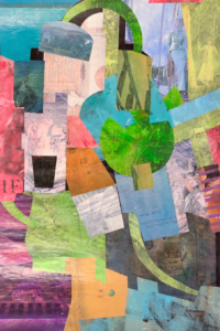 The image that was once a bold headline, new banner, or the newest eye catching product now struggles to be seen; muted, it now plays a secondary role to layers of paint and other mediums. The resulting serendipitous visual construction is an unsystematic reconfiguration and re-purposing to discuss culture, heritage and the symbolism of color.