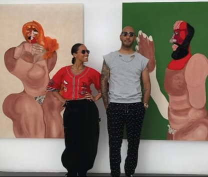 Alicia Keys and Kasseem “Swizz Beatz” Dean with paintings by Tschabalala Self. Image courtesy of SWIZZ BEATZ
