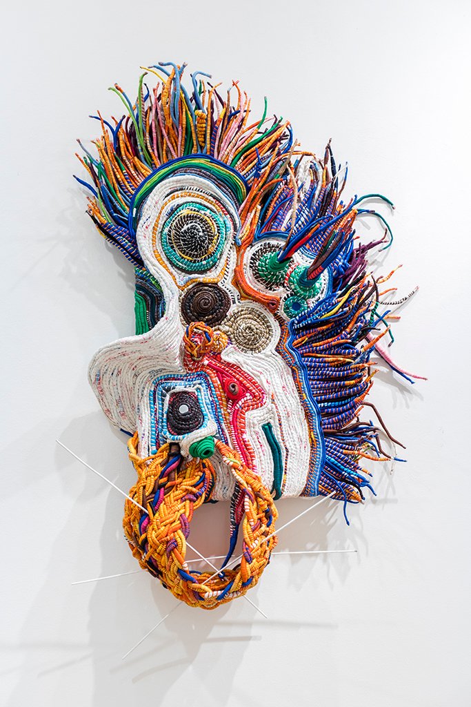 Recently featured at Tramway, Scotland, Anyaeji stands as a mid-career artist making waves with her plasto-art. Employing non-biodegradable plastics, her mosaics of plastic bottle tops and woven “yarns” utilise traditional Nigerian techniques like threading, basketry, and fabric-weaving. These labour-intensive methods, often overlooked in contemporary settings, infuse her work with unique resonance. Through her colourful baubles and intricate sculptures, Ifeoma U. Anyaeji captures tradition, environmental consciousness, and feminist narratives in a tapestry of creativity.